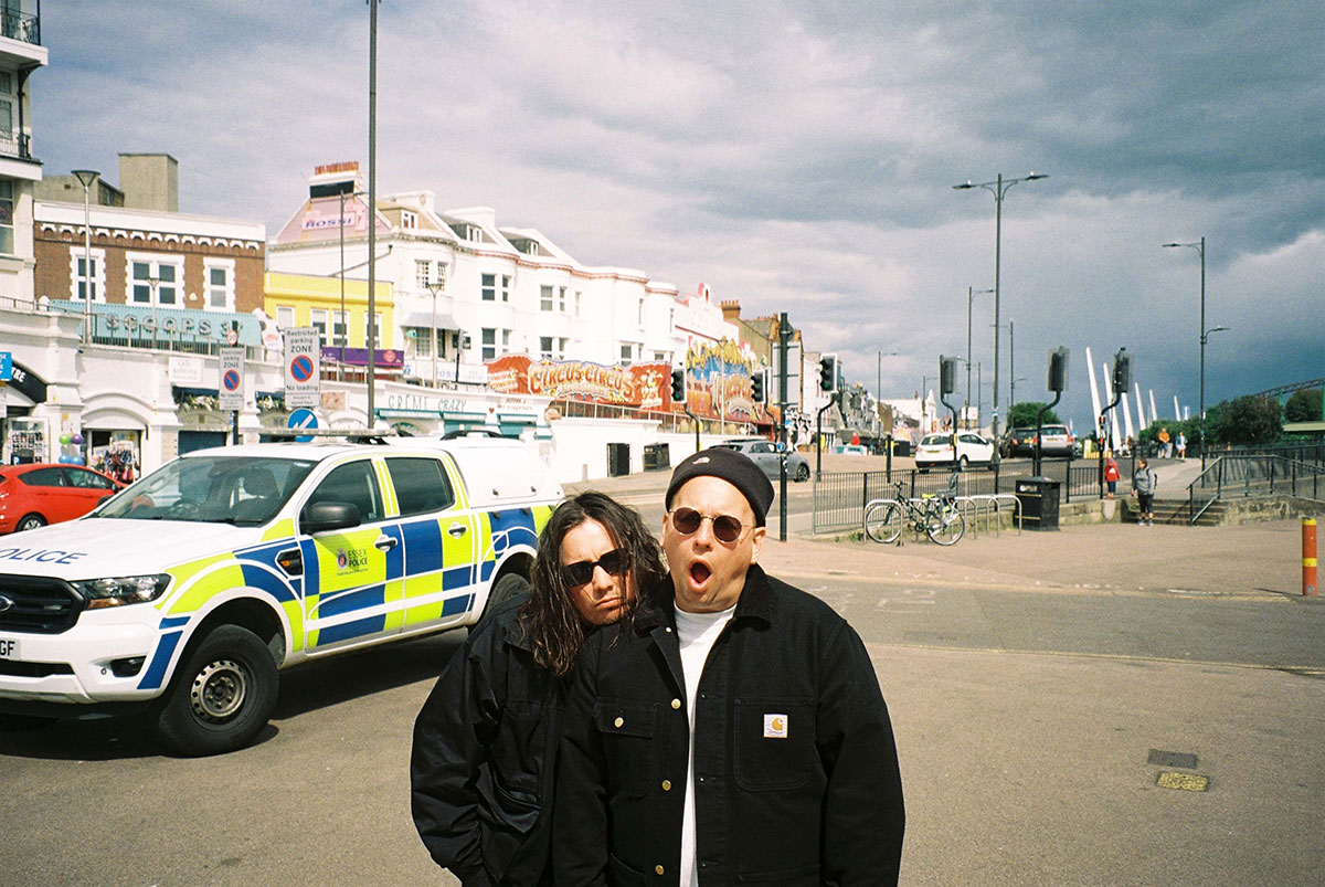 Four bright red walls frame the studio of Samuel Sprent and Simon Quénéa, PAMELA’s “full time” members. Synths, drums, guitars and amps crowd the backdrop, feeding into a central computer that’s always recording. In between musical projects that take them further afield, the pair flock back to this familiar space to touch base on experiences they’ve gathered on the road. When inspiration hits, Simon crafts the instrumentals, and Sam responds with the topline. Most artists and bands can take days, months or even years to conjure up a track they want to release into the world. For this Franco-British duo, spontaneity is their sweet spot, bashing out thirty demos across thirty days.